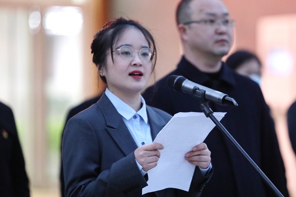 教师代表、马克思主义学院教师王岩发言。她讲到,初春的校园,春意盎然,生机无限!回望2021,极不平凡,令人难忘!展望2022,整装待发,希望满满!作为郑商学子,要用实际行动,诠释着自己最美的青春,勇敢肩负起时代赋予的重任,心系祖国,志存高远,脚踏实地,永不言弃,在奋斗中创造精彩人生,为祖国和人民贡献青春和力量。