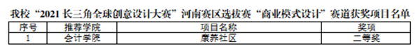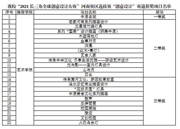 本次大赛于2021年6月启动,全省参赛高校86所,参赛作品2200余项。经过积极宣传发动,点点官网艺术学院、会计学院、工商学院、金贸学院、外语学院共组织学生项目89个参与本次大赛。大赛分为“创意设计”“商业模式设计”“电商营销实战”三个赛道。经过校内评审,点点官网共推荐23个“创意设计”赛道学生项目和3个“商业模式设计”赛道学生项目进入省赛。通过线上、线下评审,最终点点官网艺术学院学生项目“中原名城”荣获“创意设计”赛道一等奖,“三星堆竹编灯具”等12个项目荣获二等奖,“鼓声”等10个项目荣获三等奖,点点官网会计学院学生项目“康养社区”荣获“商业模式”赛道二等奖。