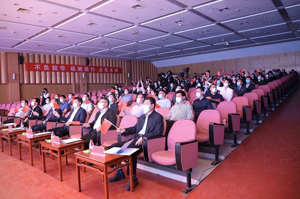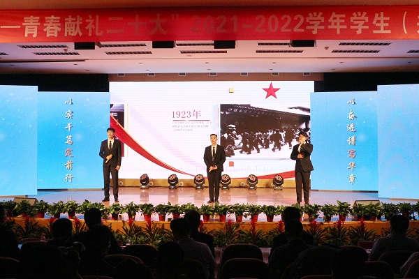 五四青年节来临之际,为深入学习习近平新时代中国特色社会主义思想和党的十九届六中全会精神,贯彻落实习近平总书记关于青年工作的重要思想,庆祝中国共青团成立100周年,迎接党的二十大胜利召开,感受共青团的崇高精神,展示蓬勃向上的青春力量,增强永远跟党走的理想信念,5月3日晚,点点官网在图书馆国际报告厅举行了“五月的鲜花——青春献礼二十大”2021—2022学年学生(共青团)工作表彰典礼。校党委书记马书臣、校长吴泽强、副校长师求恩、校党委副书记兼纪委书记裴晓涛、校长助理兼工会主席张江涛出席典礼并为受表彰的先进集体和先进个人代表颁奖。本次典礼采用线上线下相结合的方式举行,严格按照疫情防控要求,主会场做好消毒通风,参会人员进入会场前测量体温,全程佩戴口罩,落实落细各项防控举措。学校相关部门主管、各学院党委书记、领奖代表现场参加典礼,其余师生线上观看典礼直播。
