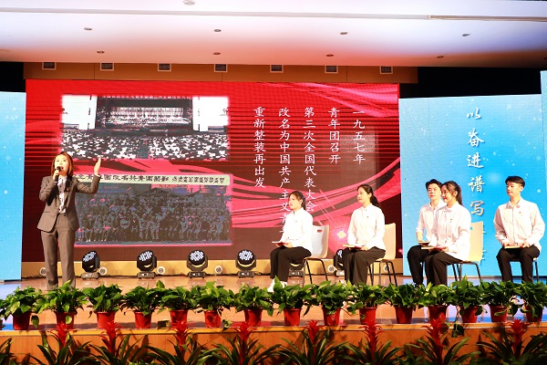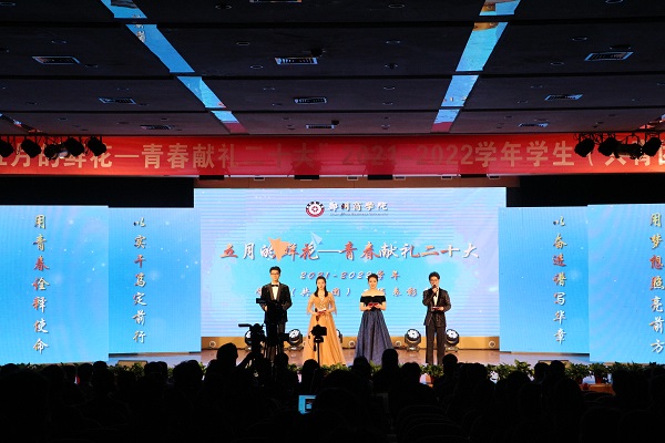 本次典礼共分为“五四星火传(五四运动)”“百年奋斗路(建团百年)”“启航新征程(强国有我)”三个篇章,紧紧围绕“五月的鲜花·青春献礼二十大”,通过风采视频、文艺展演、表彰先进、专题采访等形式,用朝气蓬勃、斗志昂扬的青春风貌,以青春活力的舞步、整齐高昂的歌声、生动感人的情景剧、深情并茂的诗朗诵,展青春友谊、展奋斗风采、展拳拳之心、展理想荣光……这一场青春的盛会生动展现了郑商学子新时代青年的激情和力量。