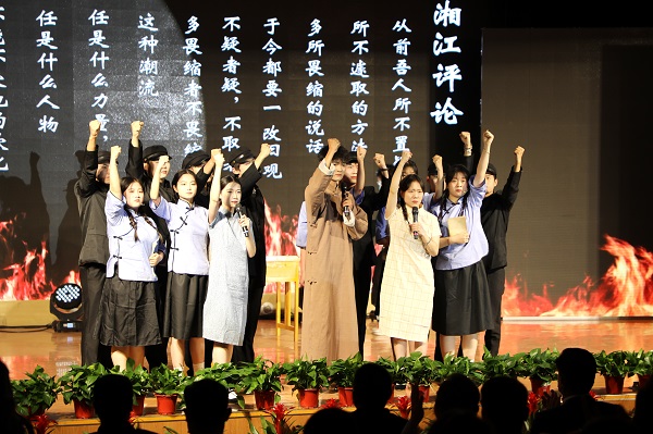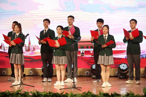 文艺展演贯穿表彰典礼,情景叙述《热血五四 青春中国》带领大家一同感受过去时代青年人的热血青春;歌舞《奔跑的青春》向大家展示了郑商青年的朝气蓬勃和锐意前行;情景讲述《我们》以一堂思政课的形式讲述共青团的发展史,向中国共青团致敬;歌曲《百年》为中国共青团献上一片热忱与祝福;歌舞《把未来点亮》展现了郑商青年奋斗的热情和青春的力量,他们把青春融入时代主题,向着宏伟的目标继续出发;朗诵《请党放心 强国有我》用行动回答时代的提问,用青春面孔让中国为之骄傲;师生联唱《我和我的祖国》表达对祖国母亲的深沉热爱。
