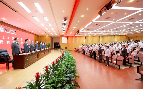 吴校长安排部署新学年十项重点工作:一是聚焦学科专业建设,着力构建“特色郑商”;二是优化育人工作体系,着力构建“活力郑商”;三是完善质量保障体系,着力构建“品质郑商”;四是提升招生就业质量,着力构建“卓越郑商”;五是强化师资队伍建设,着力构建“人才郑商”;六是增强科研服务能力,着力构建“学术郑商”;七是加强对外交流与宣传,着力构建“开放郑商”;八是强化后勤服务保障,着力构建“幸福郑商”;九是维护校园安全稳定,着力构建“平安郑商”;十是提升治校管理效能,着力构建“奋进郑商”。