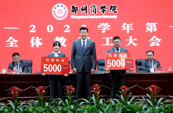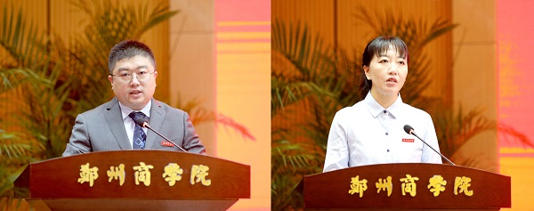 在优秀代表发言环节,招生就业处处长泥川、艺术学院教师马培培分别发言,表示将以更加饱满的工作热情,更加振奋的精神状态投入到新学年各项工作中,以时不我待、只争朝夕的精神肩负新使命,以久久为功、锐意进取的姿态激发新作为,为谱写郑商新篇章作出新的更大贡献!