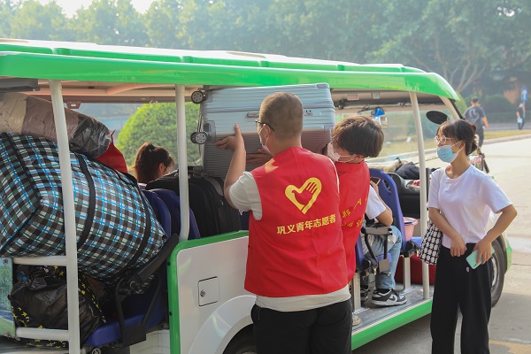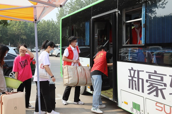 志愿者、校园记者们的身影活跃在校园内外,工作人员与新生亲切交谈,帮助新生搬运行李、道路指引等,让每一位前来报到的新生都感受到了温暖和关怀;校园摆渡车全天不间断运行,实现了同学们由学校门到宿舍门的直达;火车站、高铁站安排接站服务,“第一时间”护送新生乘坐专车安全抵达学校;各学院院长、书记、辅导员也先后前往迎新现场、学生宿舍,第一时间了解学生需要,及时处理同学们遇到的难题,全力推进迎新工作顺利进行。
