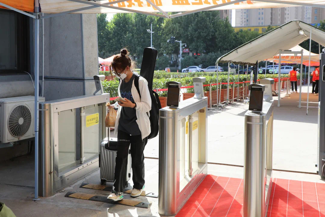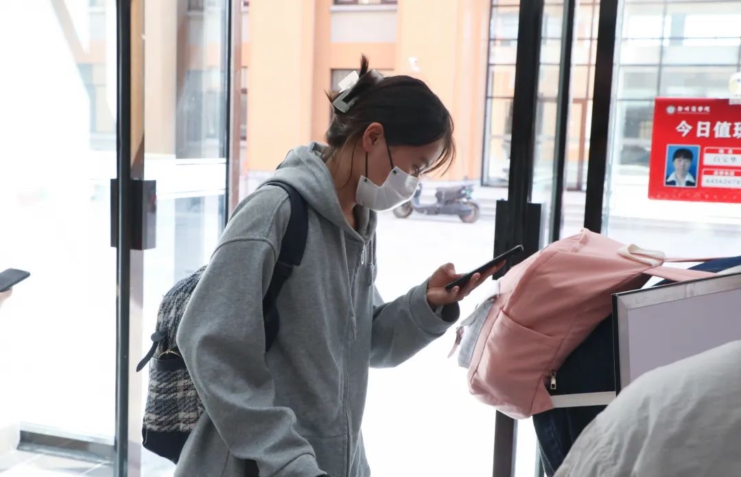 为了保证新生们平安顺利入校,学校做实做细疫情防控工作。据健康中心的李露露介绍,校门处共开设了多个体温监测点,配备了专门的消杀员,投放大量口罩、消毒液等防疫物资。“学校始终把学生的平安健康放在首位,校内统一安排了12个核酸检测点,让学生入校后可直接进行核酸检测。”随后,暖心提示:“刚入秋,气温变化大,要照顾好身体,让父母放心、自己安心。”迎新现场还有许多忙碌的身影,他们坚守岗位,认真负责,把好入校第一关。