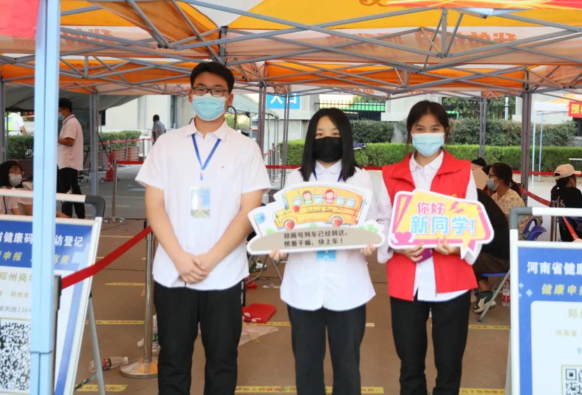 把爱心带给新生,让温暖在郑商传递。21-22日这两天,高铁站、火车站、校门口服务站、校内摆渡车、宿舍楼之间,活跃着上千名身穿“红马甲”的志愿者,他们各司其职,帮助新生搬运行李、引导新生扫码入校、为新生办理入住手续,流动的郑商红是秋日里最美的风景。