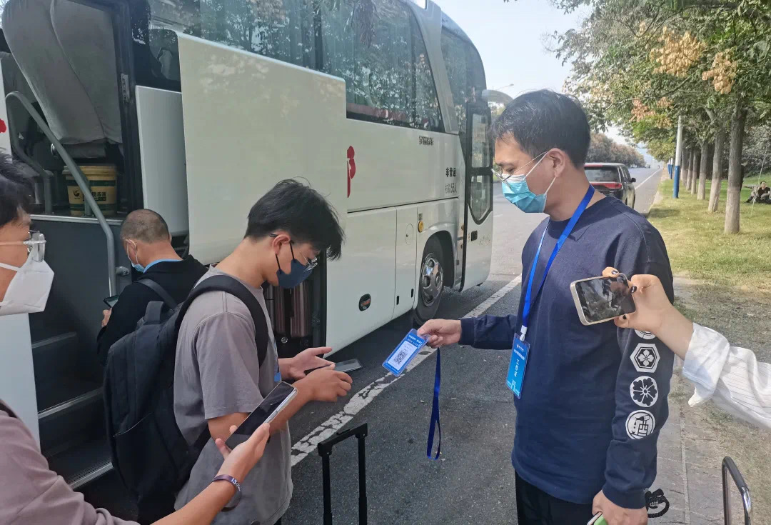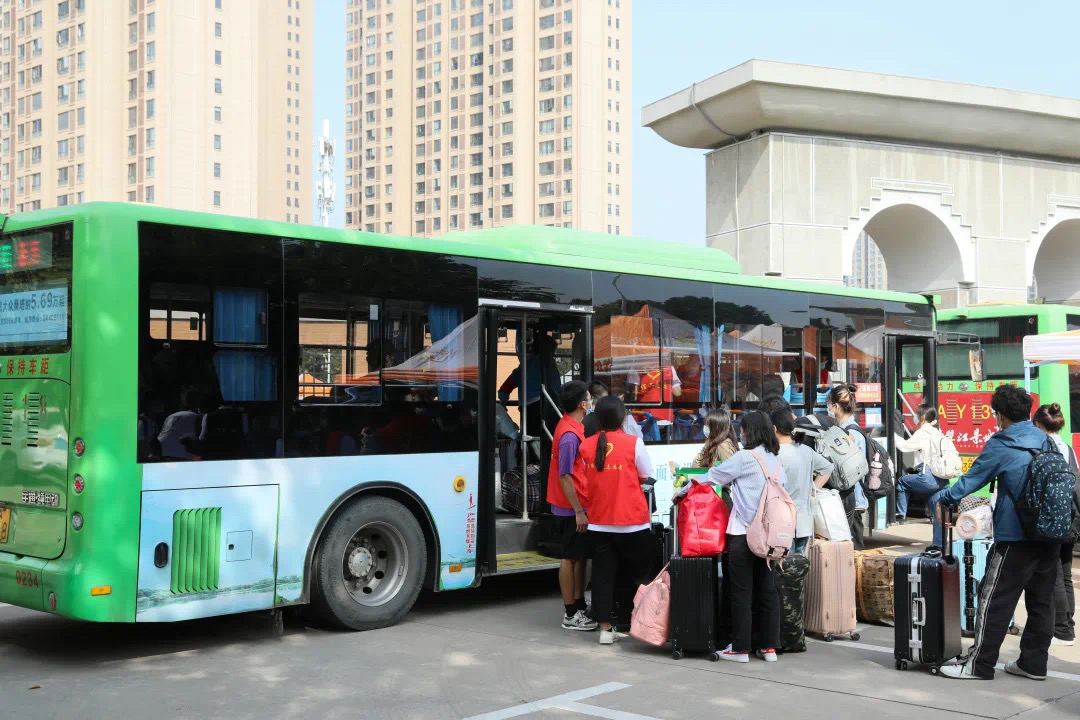 考虑到新生行李搬运难,学校在巩义高铁站、火车站均设置了迎新接待处,按不同时段需求,派发迎新专线,接新生“回家”。每年都到火车站接新生的通识中心辅导员王子浩有序组织志愿者帮新生提行李、热情地招呼他们乘坐大巴。“每年在火车站接学生,已经让我在迎新季有了仪式感,能为他们保驾护航感觉很有意义。”