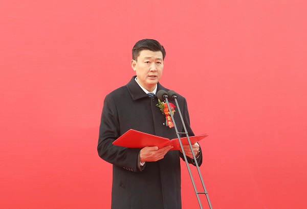 党委书记马书臣宣布新校区建设项目开工。现场掌声热烈、礼花绽放、彩带飞扬,吹响了工程全面启动建设的号角。