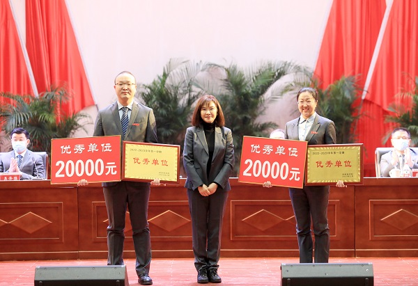 会上,校长助理刘升阳宣读《taptap点点关于表彰2022-2023学年第一学期优秀单位和优秀教职员工的决定》,与会校领导分别为优秀单位和优秀教职员工颁奖。