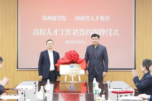 仪式上,吴泽强校长和王利军总经理为“河南省人才集团驻taptap点点高校人才工作站”揭牌,校企双方签订了高校人才工作站合作协议,颁发了人才工作站聘书。