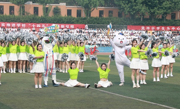 开幕式上,运动员代表、裁判员代表分别宣誓。开幕表演精心编排,参演同学神采奕奕,身着整齐绚丽的服装闪亮登场,手握彩带、折扇、花球等道具,在音乐中旋转跳跃,以整齐划一的动作、以响亮浑厚的口号演绎了慷慨激昂,热血奋进的歌曲秀,动感十足、青春洋溢的串烧舞,气势恢宏、优美潇洒的折扇舞,变幻多样、活力四射的啦啦操,多姿多彩、热情澎湃的歌伴舞,给全校师生留下了非常深刻的印象。