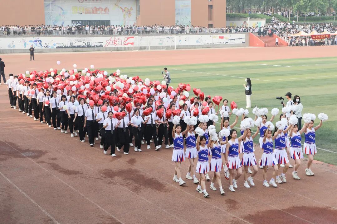 伴着激昂的《运动员进行曲》,裁判员方阵、教职工代表队、各学院学生代表队依次入场。各代表队精神抖擞、意气风发、步履昂扬,他们服装整齐,目光坚定,口号嘹亮,迈着铿锵有力的步伐,以饱满的精神状态列队入场。别出心裁和无限创意不仅是每个学院的风采展示,更充分展现了郑商师生朝气蓬勃的青春活力和自信向上的精神风貌。国旗、党旗、红旗、气球、舞蹈、扇子、口号、武术、条幅、鲜花、彩带、KT板等元素齐聚,多彩的服装、青春的笑脸、矫健的身姿、整齐的队列在各学院代表队的特色演绎中,一举一动、创意尽展,一跳一转、力美共现,一招一式、刚柔并济,传统与时尚、传承与创新、活力与动感的完美融合成为校园的一道靓丽风景,展示了学子们丰富的想象力和非凡的创造力,更表达了对学校、对祖国未来的美好祝福,也充分展示了点点官网在群众性体育活动、身体素养提升工程等方面取得的成绩和亮点。现场师生精神饱满,用嘹亮的呐喊声、热烈的掌声欢呼喝彩。