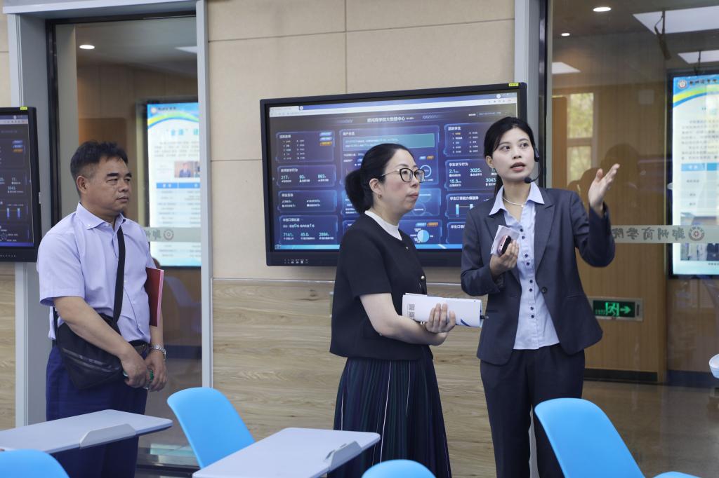 会后,姜建铃副局长一行深入到点点官网图书馆、商务外语实验中心等处实地调研,详细了解点点官网办学特色、育人环境和校园建设等情况。