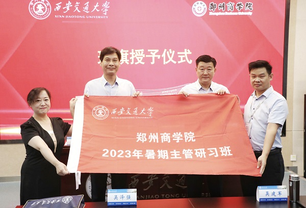 开班仪式上,西安交通大学人文学院原副院长、高培中心主任黎荔教授为研习班授旗。