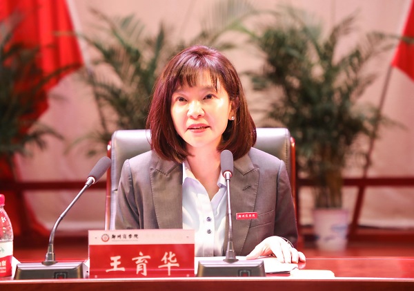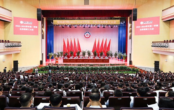王育华董事长发表题为《拥抱时代 共创未来》的讲话。她首先代表董事会向全体同仁表示慰问与感谢。董事长指出,学校党政工作报告对上学期工作进行了全面总结,对本学年工作作出了系统安排,可以看出大家保持清醒、加压奋进,较好地完成了目标任务,清晰谋划了发展路径。新学年,大家要审时度势,紧跟时代步伐,拥抱时代变化,坚持改革创新,优化发展路径;坚守内涵发展的主题,对标学生成长需求,提高人才培养质量;加强与时代的同频共振,讲好郑商故事,传递郑商声音。董事长强调,大家要把握时代的主旋律,迎接挑战、融入发展、向新而行,共创郑商更加美好的未来。