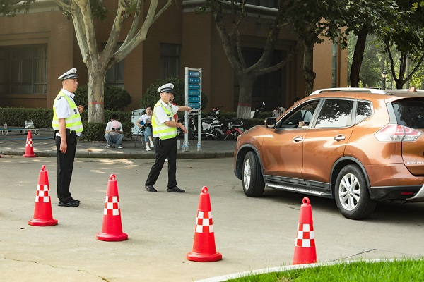 交警、校园安保人员、师生志愿者加强校园内外交通管理,制作新路标、路牌,设置交通导向图,校园安全巡逻车不间断巡视,及时疏通,确保校园交通安全通畅。