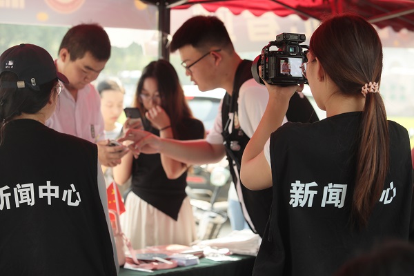 迎新期间,除了看到工作人员和志愿者的身影外,校园里还亮出了一道风景线,他们就是校园记者。他们“以文以影”对新生入学报到和校园动态进行全程跟踪报道。他们奔走在热烈与青春中,定格初印象、记录初感慨、留住初美好,只为给新同学们送上加入郑商大家庭的“第一声喝彩”。