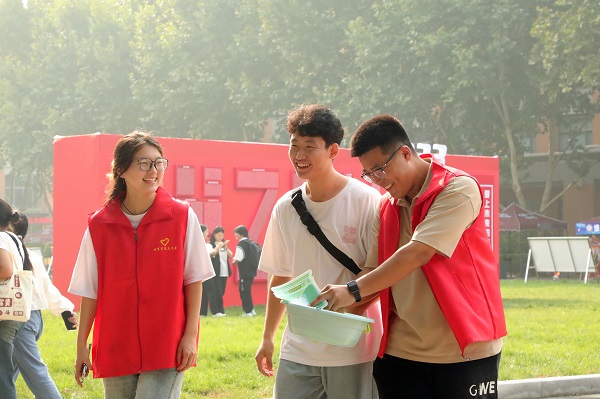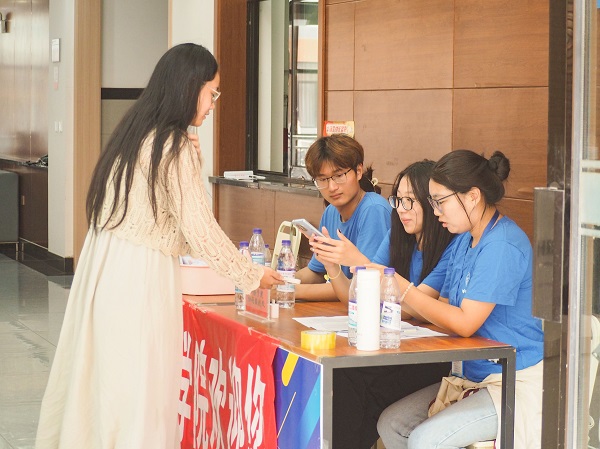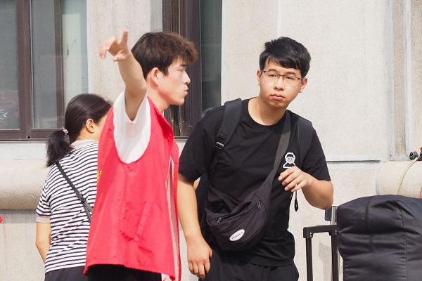 志愿者们的热情消除了新生们初来乍到的陌生感。他们分布于校内外各个地方,校门口、宿舍楼前……为新生们耐心引路指挥、答疑解惑。
