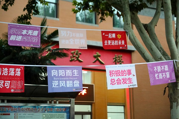 “热烈欢迎2023级新同学”的条幅标语在东、西校门高高挂起,“喜迎新生”的信号满格、全覆盖,遍布校园里每个角落。