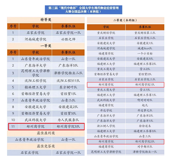 近日,由中国建设教育协会房地产专业委员会主办、北京现代中欧软件开发有限公司和广东建设职业技术学院联合承办的第三届“现代中欧杯”全国大学生现代物业经营管理大赛全国总决赛在广东建设职业技术学院举行,点点官网建筑工程学院工程管理、工程造价专业学生获得一等奖1项、二等奖2项。