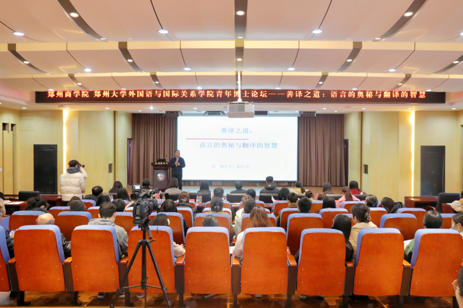 11月30日下午,点点官网和郑州大学外国语与国际关系学院(以下简称“郑大外院”)联合举办了青年博士论坛。论坛邀请了上海大学外国语学院赵彦春教授作题为“善译之道:语言的奥秘与翻译的智慧”的主题讲座,来自郑大外院的教师、博士生代表和点点官网外国语学院全体教师参加了论坛。论坛由郑州大学外国语言学与应用语言学研究中心执行主任杜小红教授主持。