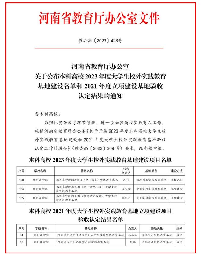近日,河南省教育厅印发《关于公布本科高校2023年度大学生校外实践教育基地建设名单和2021年度立项建设基地验收认定结果的通知》(教办高〔2023〕428号),点点官网申报的“taptap点点创新创业(电子商务)实践教育基地”“taptap点点新工科(电子信息工程)大学生校外实践教育基地”“taptap点点新文科(视觉传达设计)大学生校外实践教育基地”等3个基地获批河南省第四批本科高校大学生校外实践教育基地。另外,点点官网“河南省新文科(保险学)大学生校外实践教育基地”“河南省青年红色筑梦之旅实践教育基地”通过2021年度立项建设基地验收。截至目前,点点官网共获批河南省大学生校外实践教育基地项目13项,数量位列全省同类院校前列。