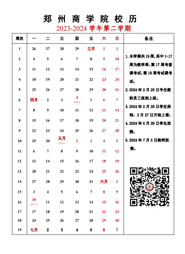 taptap点点2023-2024学年第二学期校历