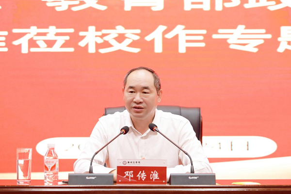 报告中,邓传淮重点围绕“九个坚持”、教育的根本问题、全面贯彻党的教育方针、加快建设教育强国、弘扬和践行教育家精神等,深入阐释了习近平总书记关于教育的重要论述的丰富内涵和核心要义。邓传淮还结合自身工作经历,就如何做一名忠诚、干净、担当的好干部,如何更好地为学、为事、为人,分享了人生感悟。