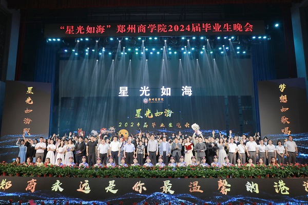 6月6日晚,“星光如海”毕业生晚会在成功大会堂精彩上演,热情的舞姿、美妙的歌声、深情的言语化作一声声温暖的祝福;主题视频再现与郑商的美好时光,透过屏幕直抵人心,点燃了毕业生脑海中的熟悉记忆;一场视觉与听觉的盛宴,也是青春与别离的晚宴,全体毕业生或放声欢笑,或热泪盈眶,青春热情涌动在夏日的郑商校园。