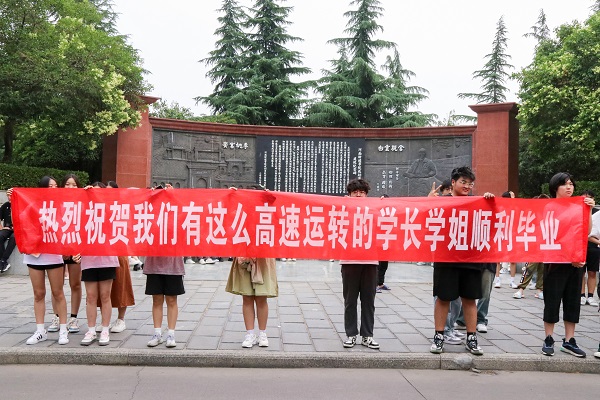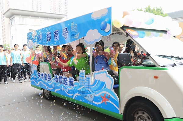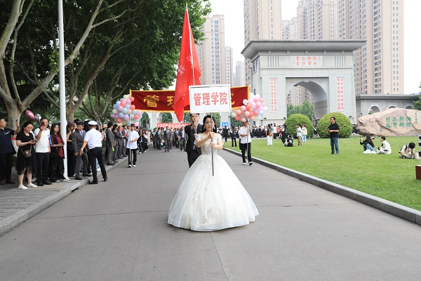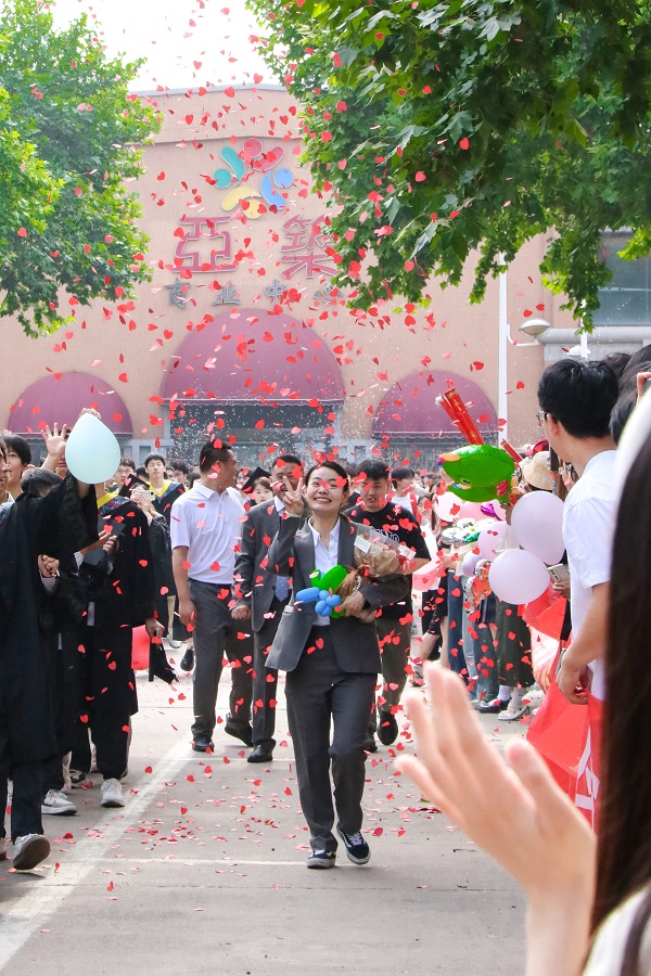 6月8日上午,伴随着军乐团欢快、强烈的鼓点,备受师生喜爱、独具郑商特色的毕业生校园巡礼拉开帷幕。王育华董事长、陈坚德执行董事、吴建军书记、吴泽强校长、裴晓涛副书记、张江涛助理、刘升阳助理、陈宗纬助理和各部门主管、副主管、教师代表手持祝福板,为毕业生加油鼓劲;在校生代表带着各式的标语、手卡、鲜花、礼物,有秩序地分列在巡礼路线两侧,为他们送上祝福;毕业生们与师长、同学们挥手告别,相互祝福,再一次行走在郑商校园里。