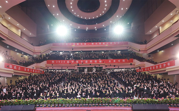 上午10时,2024届毕业生毕业典礼暨学位授予仪式在成功大会堂召开,现场庄重热烈。学校领导、师长、在校生为毕业生们送上殷殷嘱托和深切祝福,毕业生代表用最真挚的文字祝福母校、感恩师长。