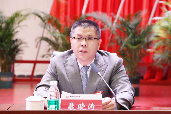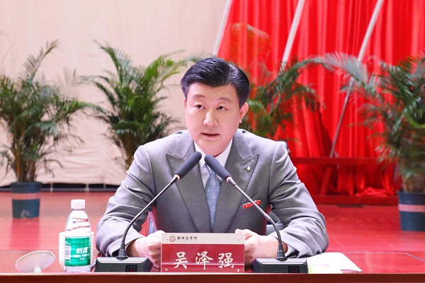 校长吴泽强作题为《深化改革 聚力评估 全面提升学校教育教学质量》的校务工作报告。报告回顾总结了上学期的工作成效:一是校庆活动隆重热烈;二是审核评估有序推进;三是教学工作扎实开展;四是学生工作持续加强;五是招生就业再获佳绩;六是办学条件持续优化;七是社会影响力不断提升。吴校长回顾总结了郑商20年来的发展经验:内涵建设是学校发展之“根”,改革创新是学校发展之“要”,师生成长是学校发展之“本”,务实重干是学校发展之“基”,团结协作是学校发展之“魂”。这些经验总结是郑商人接续奋斗的实践指南,要坚定信心、一以贯之、长期坚持,在传承和发展中促进学校高质量发展。
