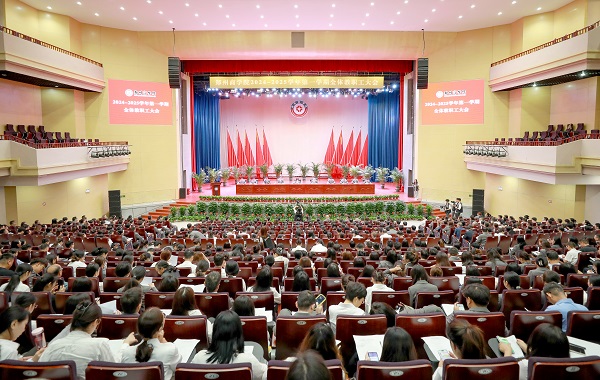 吴书记就新学年工作提出要求:一是强化政治建设,坚持不懈用习近平新时代中国特色社会主义思想凝心铸魂。二是强化基层党组织建设,奋力推动基层党建工作落实落细。三是全面提升思想政治工作质量,营造良好的育人环境。四是持续正风肃纪,涵养风清气正的政治生态。五是强化宣传思想工作,凝心聚力发出郑商声音。六是创新群团和统战工作,进一步激发工作活力。七是坚持高质量安全保障,确保校园和谐稳定。吴书记指出,全体郑商人要以饱满的精神状态投入新的学年,为学校事业高质量发展执着付出,不懈努力。一是要心怀忠诚,担当有为;二是要团结奋进,形成合力;三是要勇于创新,持续提升。吴书记强调,全校上下要更加紧密地团结在以习近平同志为核心的党中央周围,深入学习贯彻党的二十届三中全会精神,以时不我待、只争朝夕的精神,勠力同心,奋楫笃行,为在中国式现代化中奋力书写郑商新篇章作出新的更大贡献,以优异成绩向新中国成立75周年献礼。