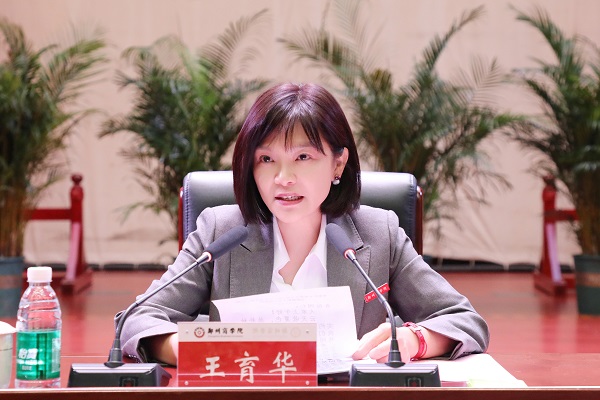 王育华董事长在讲话中代表董事会向加入郑商、与学校同行的新同仁表示热烈欢迎。董事长指出,上学期全校上下始终保持奋进姿态,团结一心、集智攻关,用心开展校庆活动,圆满完成招生工作,持续提升社会影响力。越来越多的郑商人代表学校出现在更大的舞台上,在全国、全省的大赛上取得了优异的成绩,发出郑商的声音。董事长勉励全体郑商人齐心协力,确保各项工作有条不紊地推进。她强调,作为教育工作者,要更加保持自信、守正创新,在直面问题、破解难题中,换一种角度去思考、换一个途径去探索、换一种方式去解决,跳出“舒适区”,乘势而上,一同实现更加完美的更迭。