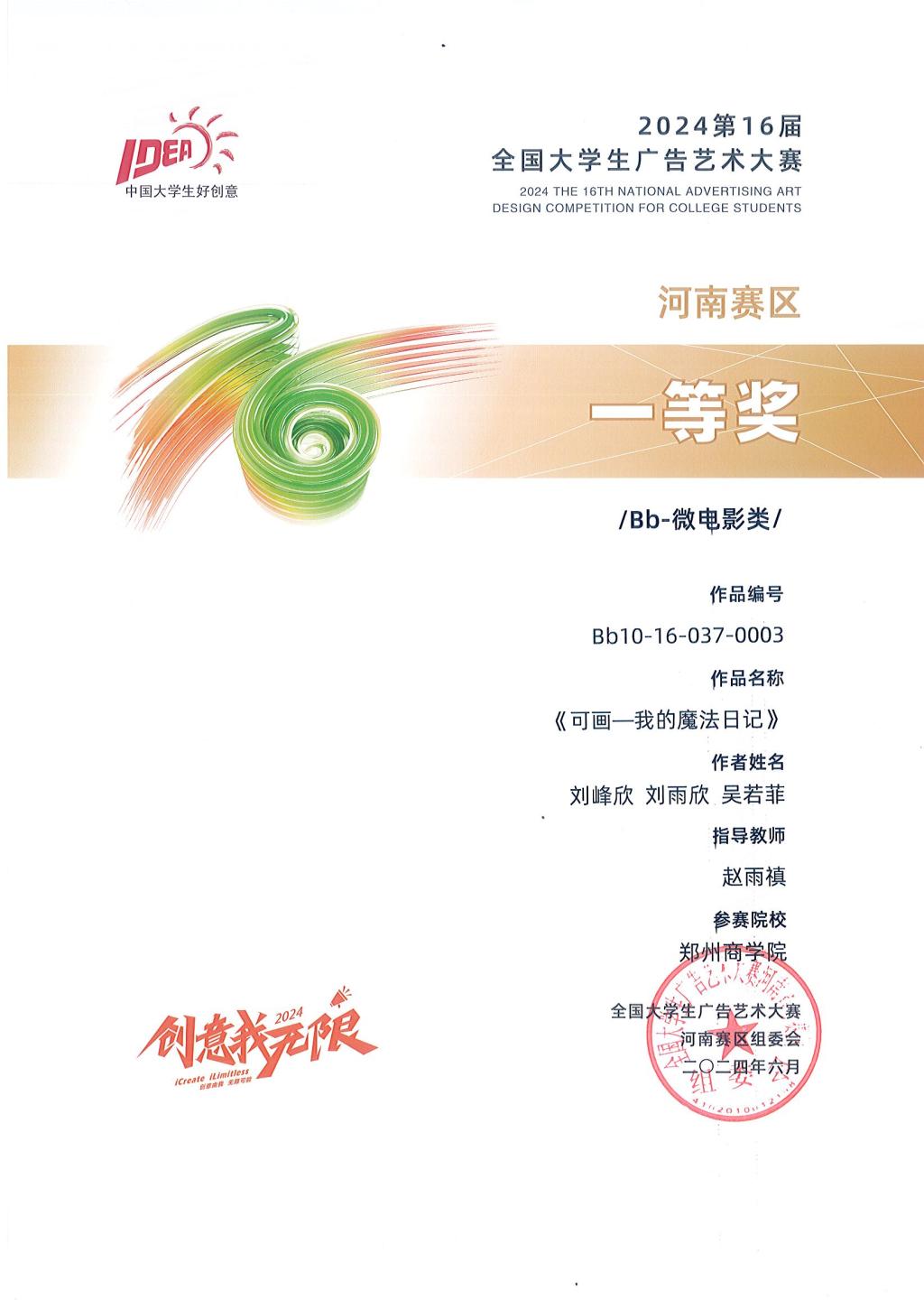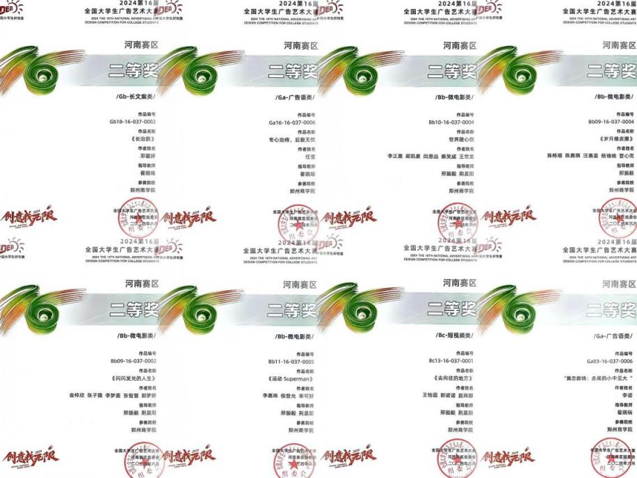 近日,第16届全国大学生广告艺术大赛(简称“大广赛”)获奖名单公布,点点官网学子在国家级A类赛事大广赛中取得优异成绩,荣获国家级三等奖1项、优秀奖2项,省级一等奖2项、二等奖15项、三等奖21项。
