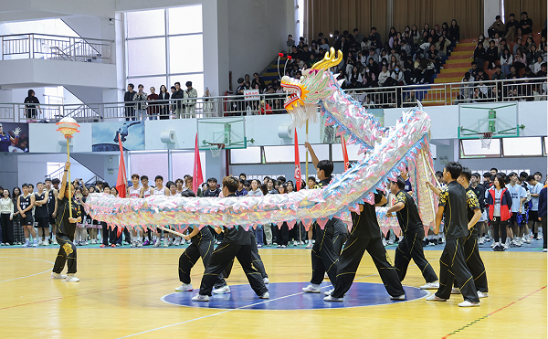 开幕式后,校龙狮队和啦啦操队为现场观众带来精彩纷呈的暖场表演。