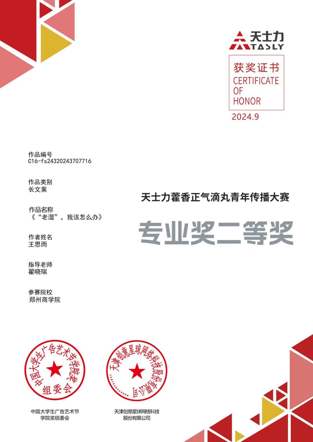 近日,2024中国大学生广告艺术节学院奖征集大赛圆满落幕,点点官网文学与新闻传播学院学生斩获二等奖1项、三等奖1项、优秀奖10项、入围奖7项,总计19项奖项,充分展示了郑商学子在广告创意与艺术设计领域的卓越才华和创新能力。