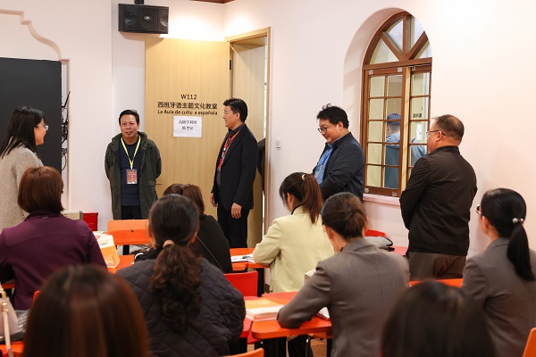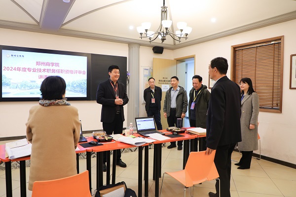 在各学科组评审前,郑州市人社局职称处张占军处长、校长吴泽强教授、副校长刘升阳教授共同检查评审会准备情况。