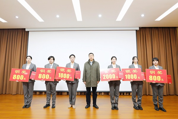 校领导分别为就业创业先进集体、先进个人、就业创业指导课程教师教学技能大赛获奖选手颁奖。