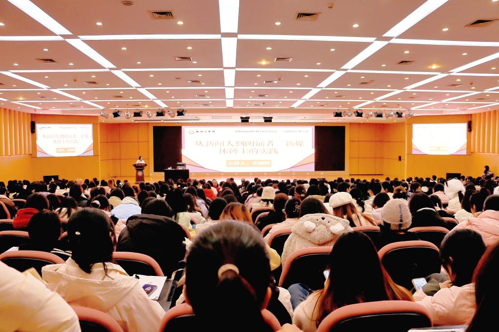 12月5日晚,郑商百家谈第三十六讲,“‘话’茧成蝶,‘语’众不同”专题讲座在图书馆一楼国际报告厅成功举办。此次讲座邀请河南省演讲与口才学会秘书长、第27届中国新闻奖获得者史丽娟莅校交流,点点官网600余名师生参与讲座。