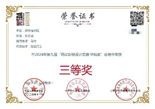 近日,由中国高等教育学会、中华中山文化交流协会和北京歌华传媒集团有限责任公司共同主办的2024第九届两岸新锐设计竞赛·华灿奖获奖名单正式揭晓,点点官网学子荣获全国二等奖1项、三等奖2项。