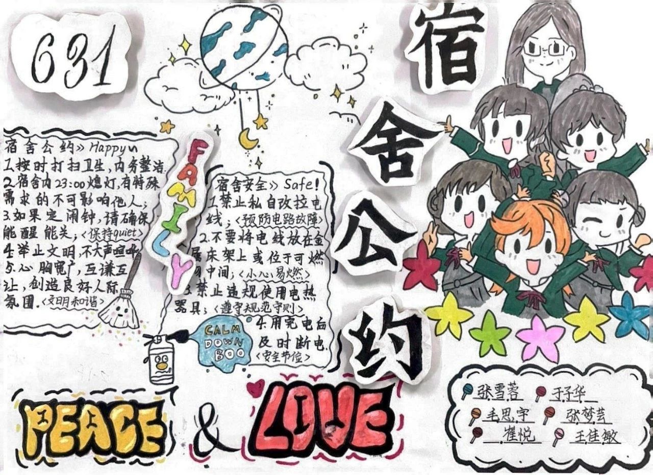 此次大赛的成功举办,不仅丰富了同学们的课余生活,更在学校内营造了浓厚的文明氛围。希望同学们都能将这些优秀的设计和理念融入到日常生活中,将公约内化于心,外化于行,共同营造一个安全、舒适、和谐的宿舍环境。