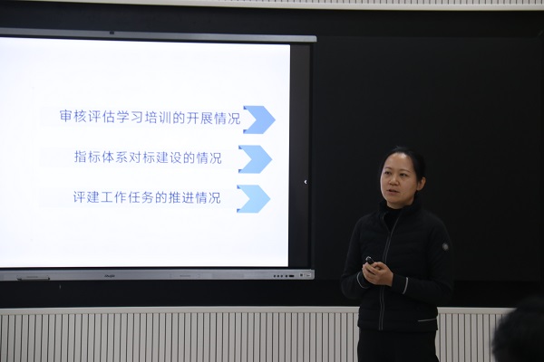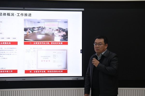 会上,各二级学院院长对审核评估学习培训开展情况、指标体系对标建设情况和评建工作的推进情况等进行了详细地汇报。第一,在对审核评估学习培训开展情况方面,二级学院成立教育教学审核评估工作组,加强组织培训学习,推动全员参与。第二,在指标体系对标建设情况方面,二级学院对照指标体系,总结了办学方向与本科地位、培养过程、教学资源与利用等方面的建设成果。第三,在评建工作的推进情况方面,二级学院介绍了OBE理念的贯彻落实情况、学院自评报告的撰写、专家听课和专家访谈等环节的准备情况。