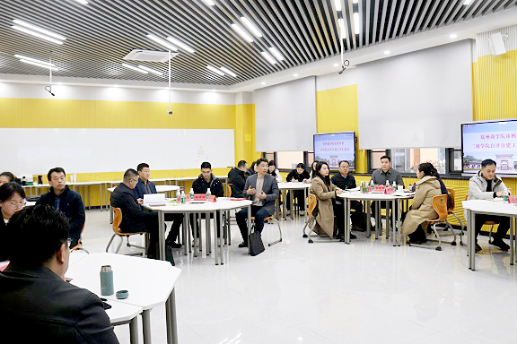 校长吴泽强、董事长助理陈宗纬、党委副书记兼纪委书记裴晓涛、副校长刘升阳对二级学院审核评估工作的开展情况进行了点评,肯定了二级学院的优秀作法,指出了存在的不足,并提出了对应的指导意见。校领导重点强调,一是要熟悉指标体系,积极学习借鉴其他高校的优秀做法和经验,开展培训会、讲座等活动邀请专家莅临指导;二是要善于凝练总结发展举措,突出人才培养、师资建设等取得的成果,体现“新商科、应用型、国际化”的办学特色和办学优势;三是自足实际,明确存在的差距与不足,及时沟通反馈,不断改进提升。另外,校领导也对专业设置与规划、资料库管理、微专业和主辅修等问题提出了针对性的建议。