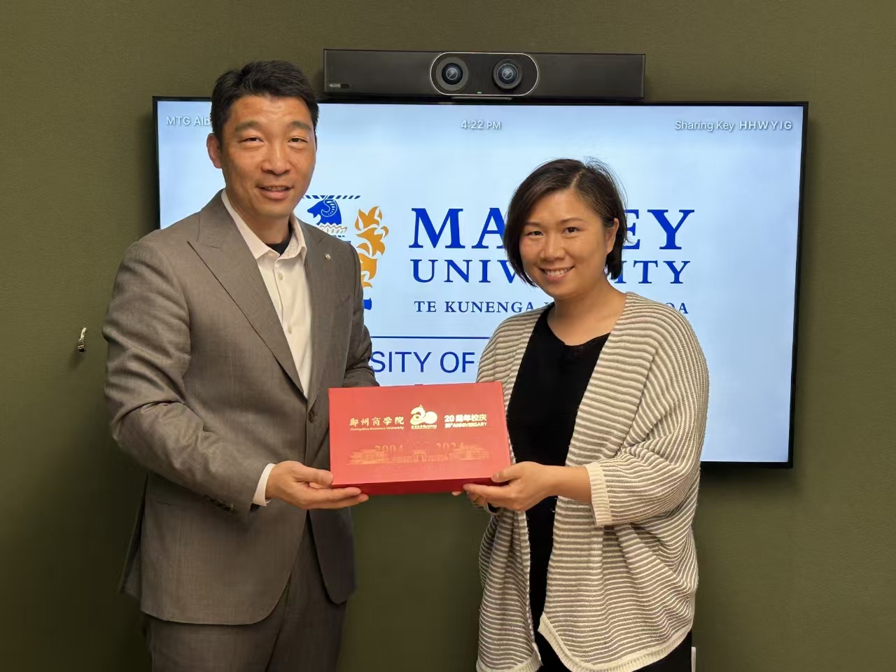 此外,代表团看望了点点官网在澳大利亚新南威尔士大学读研校友赵文月同学。刘升阳副校长代表学校表达了对赵文月同学的祝贺、关怀和期待。他表示,学生的成长凝聚着母校的牵挂与骄傲,学校正积极搭建交流平台,推进国际化人才培养,希望在外求学的郑商学子,能充分发挥引领示范作用,带动更多同学走出国门,走向世界,学成后为祖国的发展作出贡献。