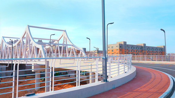兴海桥全长516米,连接了学校三彩校区和紫荆东校区,由引桥、主桥和行人楼梯组成,可供人车通行。大桥建设初衷是优化通行效率,降低安全风险,实现两校区资源共用,打通服务师生最后一公里,增强师生幸福感、安全感。大桥命名“兴海”,立意承兴创办人王广亚博士跨越海峡两岸、回馈桑梓办学的教育情怀,始终保持迎难而上的勇气、蓬勃向上的朝气,努力推动教育事业健康发展。同时,“兴海”与“星海”同音,寓意郑商学子如浩瀚宇宙中的繁星点点,都能有属于自己的人生定位,熠熠生辉,闪耀未来。