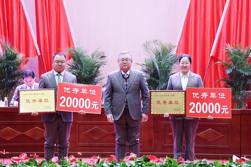 会上宣读了《关于表彰2024-2025学年第一学期优秀单位和优秀教职员工的决定》,与会校领导分别为优秀单位和优秀教职员工颁奖。
