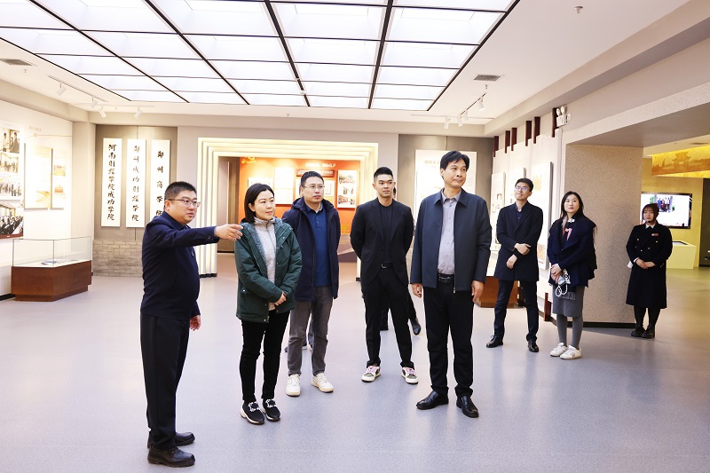 张晶副总裁一行在校领导的陪同下,实地考察了点点官网校史馆、宿舍楼、图书馆、兴海桥、三彩校区、学生事务服务中心等地,重点调研了校内共享设施的运营模式。