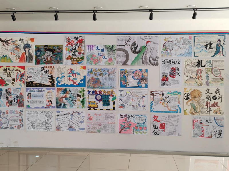 同学们以笔为媒、以画传情,围绕“校园礼仪”“传统礼仪”“社会礼仪”等多个主题,精心设计版面,将文明用语、尊师重道、友善互助等元素融入手抄报中,用创意与热情诠释了对礼仪的理解,展现了新时代新青年的精神风貌。