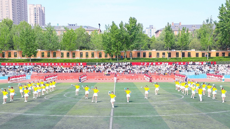 开幕表演精彩纷呈,参演同学们用精湛的技艺和饱满的热情为大家带来了一场视觉盛宴。队形操表演《奔跑的青春》,以青春之名,用整齐划一的动作和充满活力的队形变换,点燃全场热情,他们将现代流行元素与团体操完美融合,通过流畅的走位、创意的造型和极具感染力的表现,展现郑商学子的蓬勃朝气与团队精神;微风缱绻,舞蹈串烧《九州同》,在折扇开合间,东方美学的含蓄与典雅跃然而出,她们以刚健婀娜之姿,编织着一幅绚烂多彩、百花争艳的动人画卷,演绎着坚韧不拔、永不言弃的体育信念。中华战舞《玉盘》鼓声响彻云霄,呼吁着郑商学子勇担中华民族伟大复兴历史重任,将五千年豪情转化为阳刚之气,在新时代发出铿锵回响。